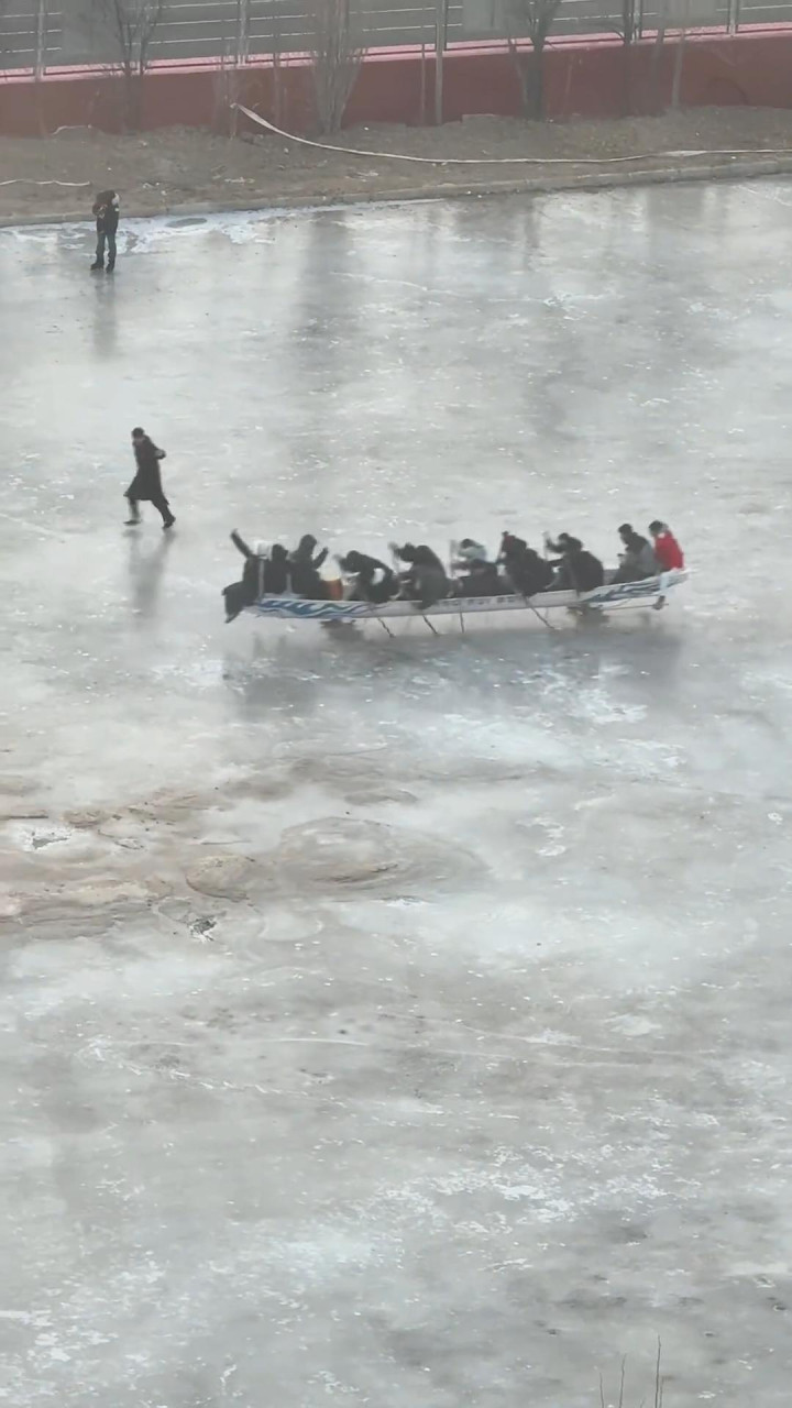 12月2日,有网友发视频称,他在黑龙江省大庆市的东北石油大学拍到有学生在冰上练习划龙舟,有网友调侃称:“北方人不擅水战,但冰上可以”。